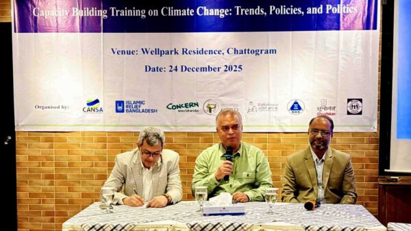 ক্যানসা বাংলাদেশ এর উদ্যোগে চট্টগ্রাম অঞ্চলে কর্মরত ২০টি স্থানীয় বেসরকারি সংগঠন ও অন্যান্য প্রাসঙ্গিক অংশীজনদের জন্য “জলবায়ু পরিবর্তন: প্রবণতা,নীতি ও রাজনীতি” শীর্ষক একটি সক্ষমতা বৃদ্ধিমূলক প্রশিক্ষণ অনুষ্টিত হয়। বুধবার চট্টগ্রামের
